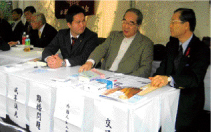 From left to right: Mr Samuel Choi, Research Officer and Dr K C Lai, Director of SAAP exchange views with Willie Cheng. |