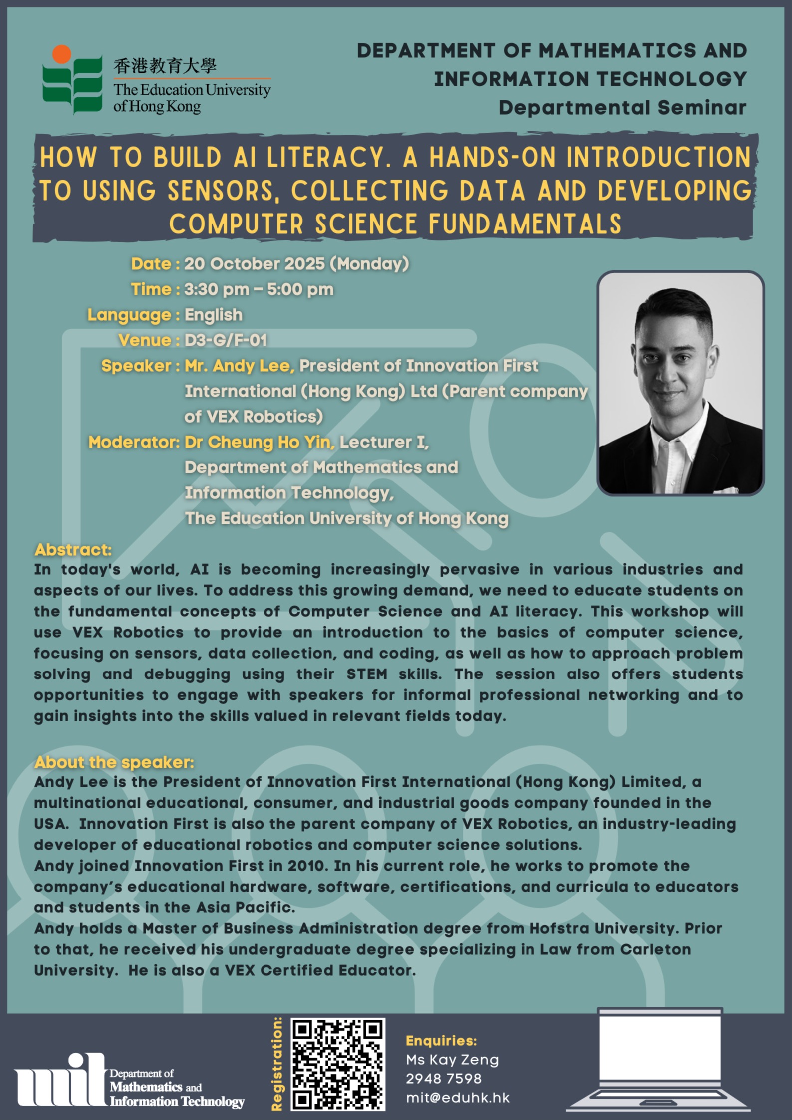 Speaker:Mr. Andy Lee (President of Innovation First International (Hong Kong) Ltd (Parent company of VEX Robotics))