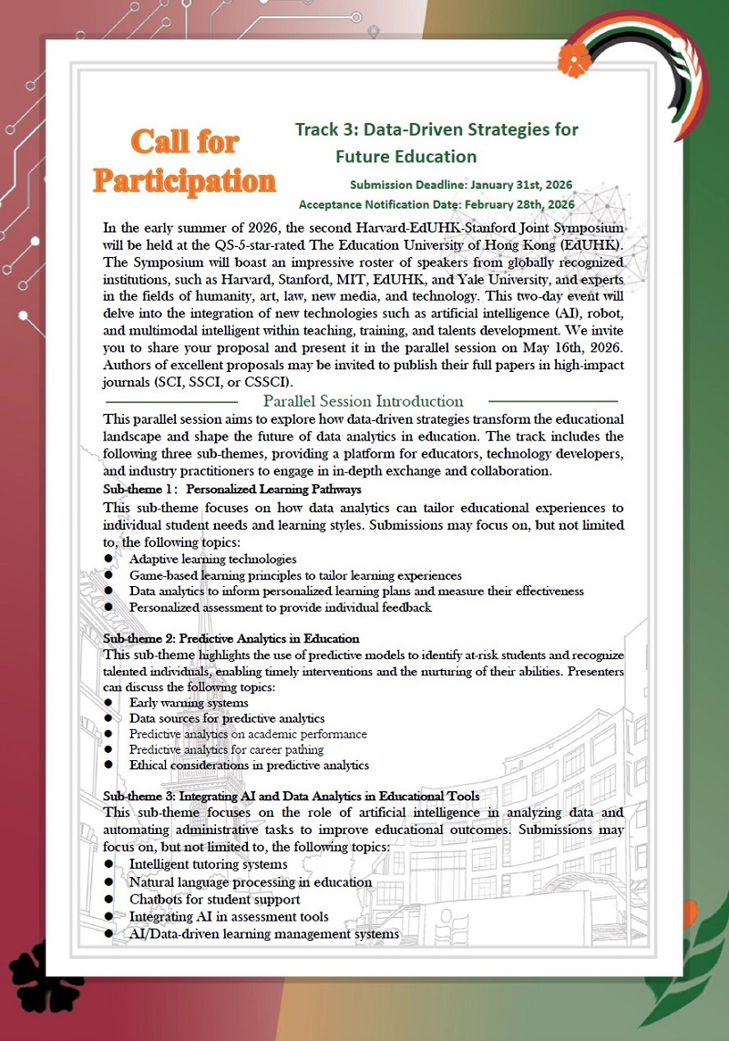 Harvard-EdUHK-Stanford Joint Symposium “Emerging Technologies and Future Talents" Date:2026-05-15 Time:10:00:00 https://harvardces.eduhk.hk/