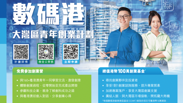 「数码港大湾区青年创业计划」助粤港澳青年发展科技初创