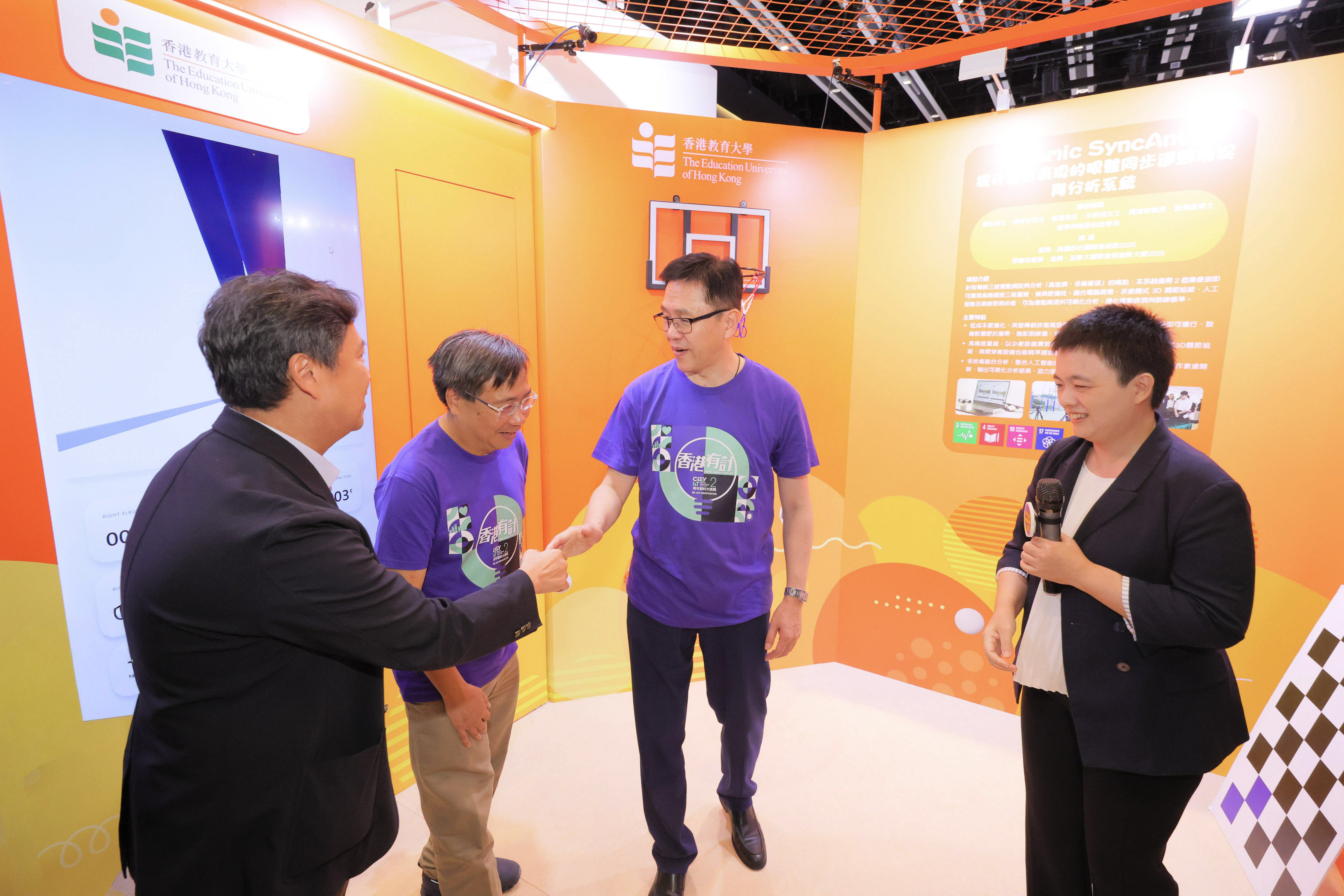 ![]() 创新科技及工业局局长孙东教授,JP及其他政府代表参访了教大摊位,了解最新的健康科技研发,以助力专业运动员的发展 |