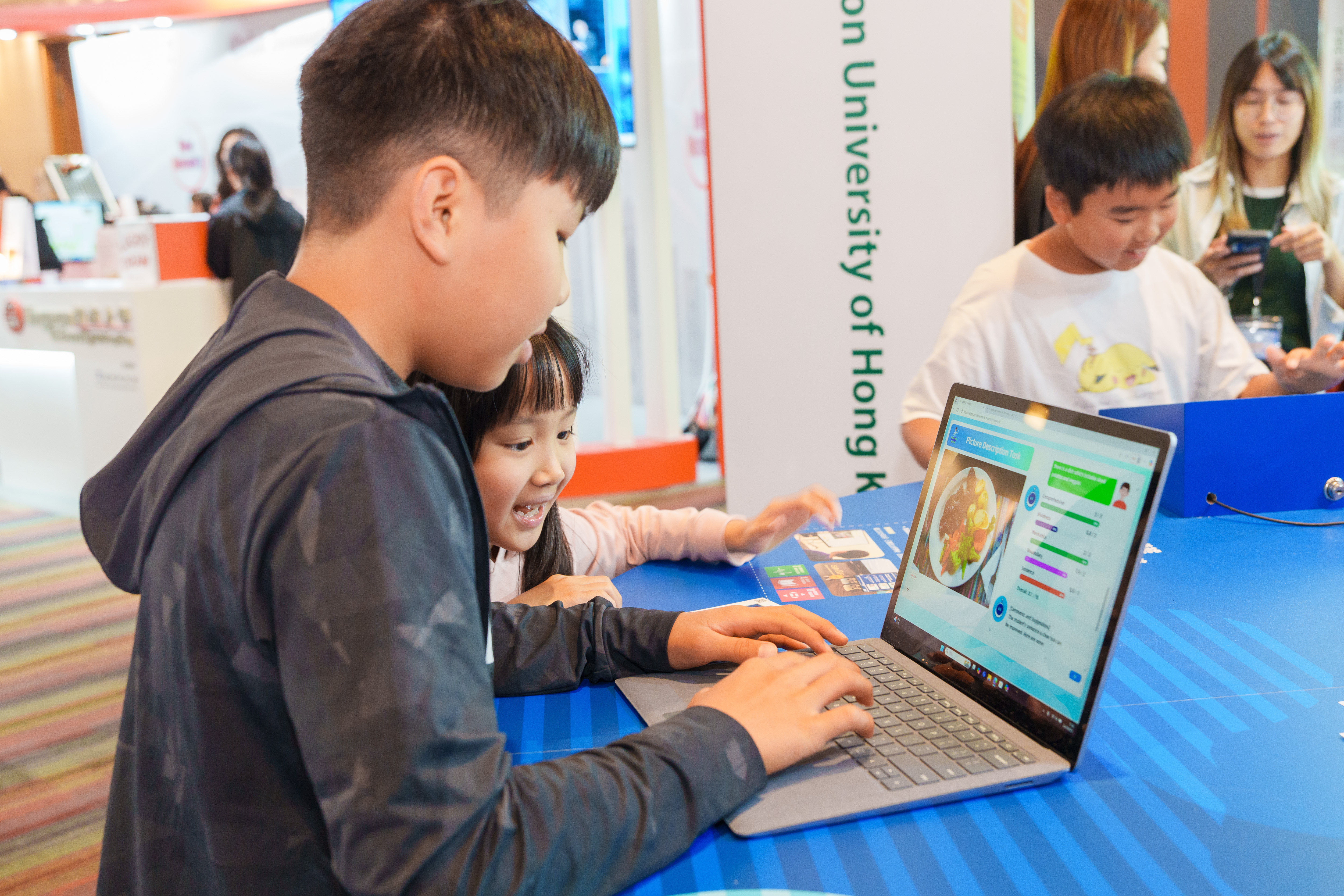 在人工智能与数码化时代,教大致力透过革新沟通方式与激发人类创意,提升教育与工作效率。于「数码时代的对话」展区,教大展示了AI驱动的新世代数码教学方案。学生对人工智能驱动的「SWEETIE线上平台」充满好奇,该平台能让他们透过特别设计的模型,激发创造力;学童同时对内置AI分析的学习系统「MAPLE」深感兴趣,此系统让他们能在没有导师的情况下,独自练习英语及看图写字技能。而专注于团队协作的AI虚拟平台「YoChatGPT」,则能协助团队运用不同AI模型进行协作和讨论。