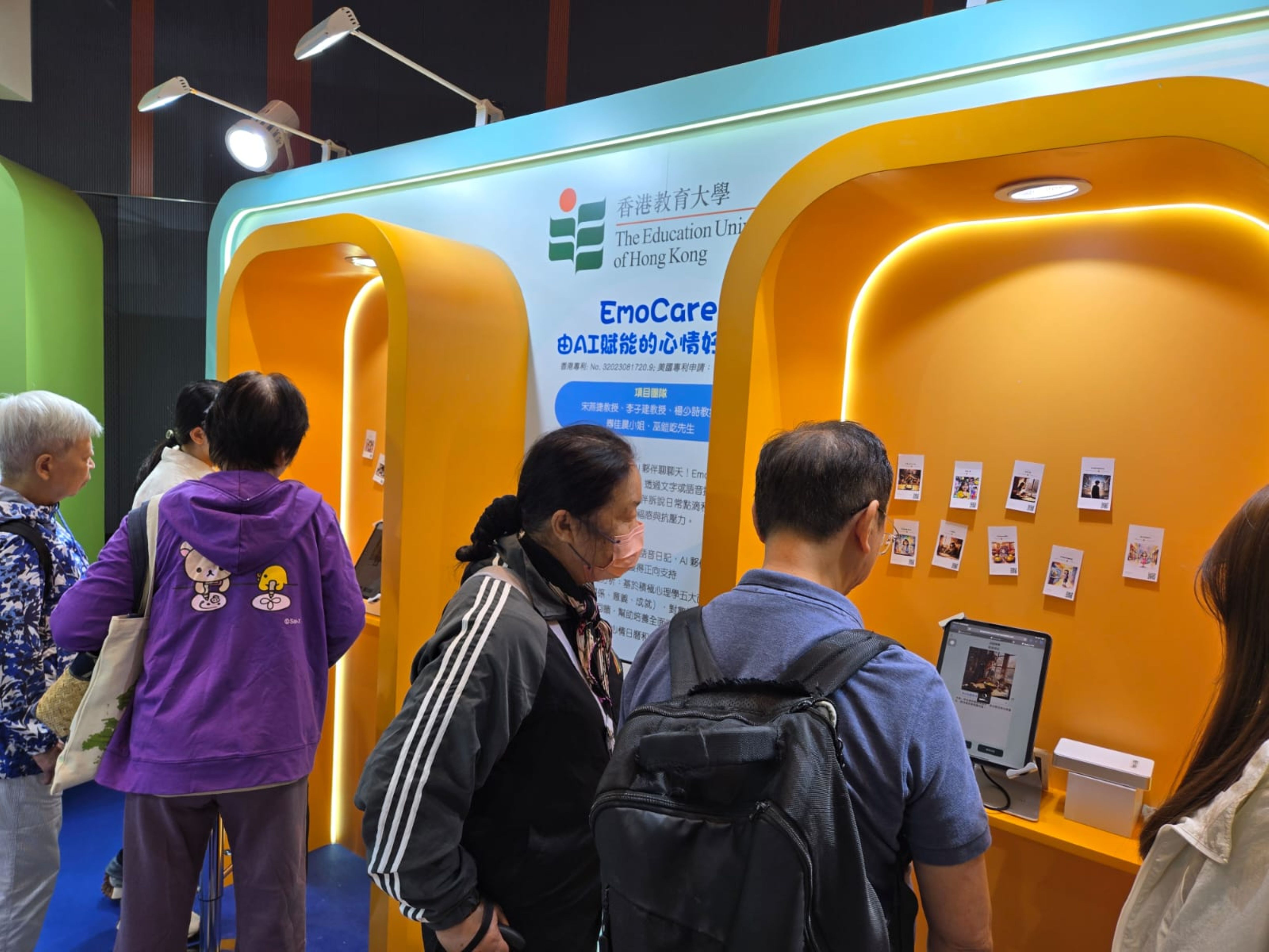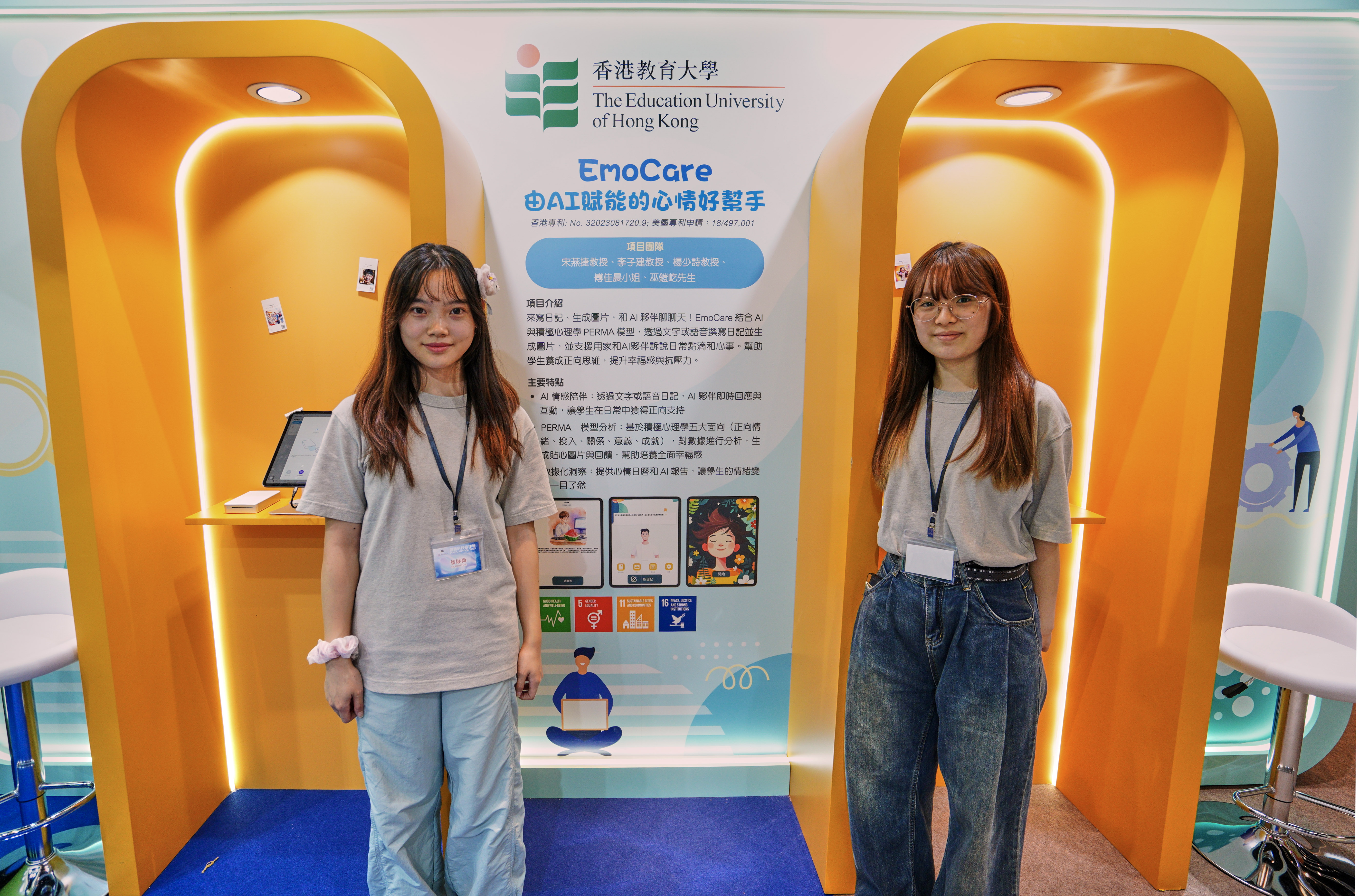 市民大众的健康和福祉同样是教大创新的重点。获奖发明「Dynamic SyncAnUp」利用眼体同步运动捕捉与分析系统,让运动员能更安全更有效地提升运动表现;另一创新项目「EmoCare」则让参观者体验图像化日记帮助正向思维,透过与AI伙伴对话抒发感受,促进社会关怀与心理健康。
