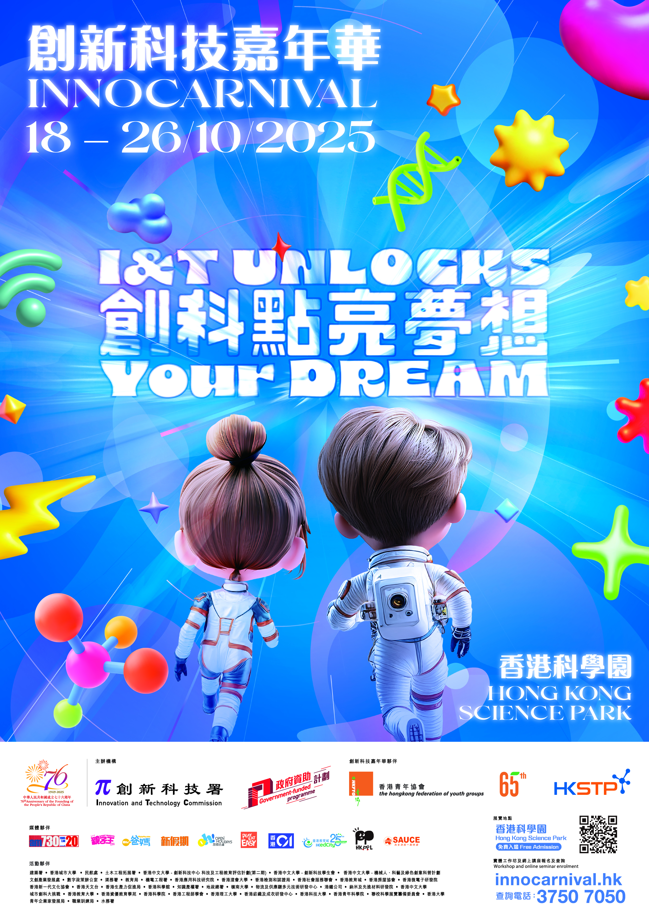 InnoCarnival 2025, the annual flagship event organised by the Innovation and Technology Commission (ITC), returns to Hong Kong Science Park from 18 to 26 October 2025. With the inspiring theme “I&T Unlocks Your Dreams” (创科点亮梦想), this year’s Carnival highlights how innovation and technology are driving new possibilities for all.