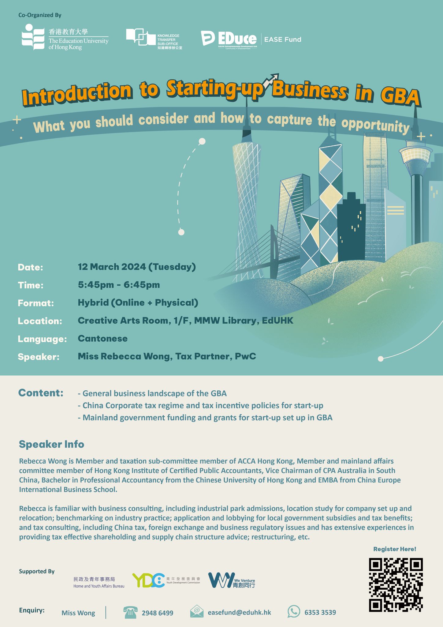 Introduction to Starting-up Business in GBA - What you should consider and how to capture the opportunity?
