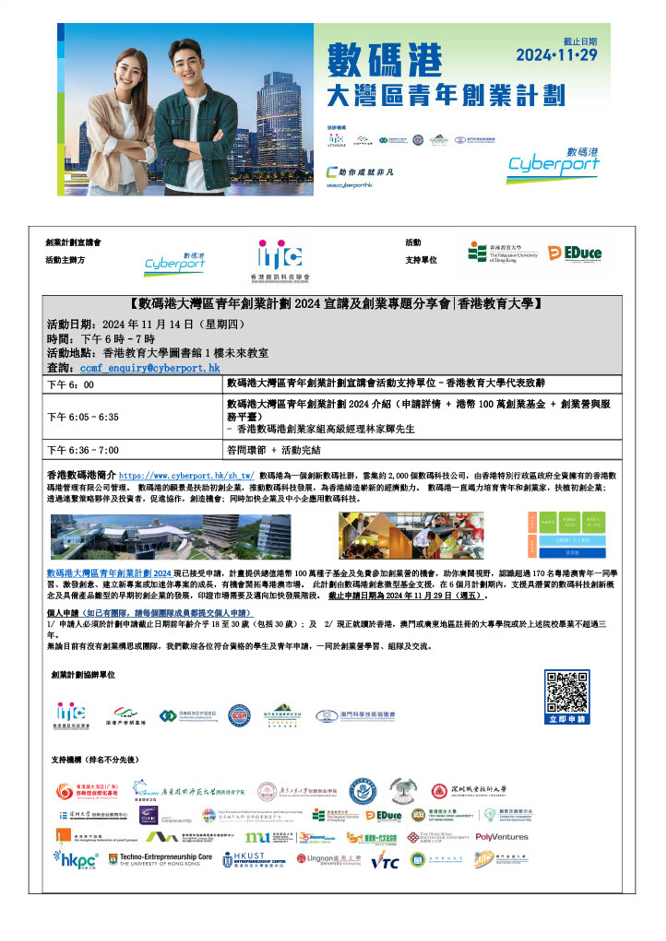 「數碼港大灣區青年創業計劃」簡介會@香港教育大學