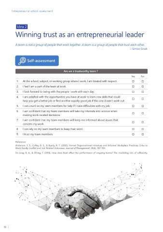 De Jong, B. A., & Elfring, T. (2010). How does trust affect the performance of ongoing teams? The mediating role of reflexivity,