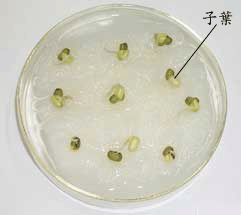 綠豆剛萌發後的子葉仍是米黃色的![]()