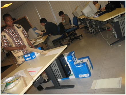 Figure 2: Pictures taken during the activity for measuring “g” by using trajectory projectile motion in PHYSWARE workshop in Italy, 2009.