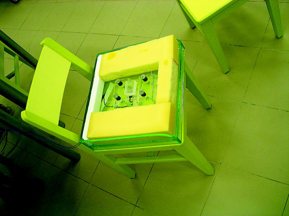 ¡@¡@ªì®É§Ú̺c«ä³oӸ˸m¬O§Q¥Î¤HÅ骺«¶q©M¡u³¬¦X¹q¸ô¡vªºì²z¡C¦b®y´È¤º¸Ë¸m¼u®¡B»É¤ù¡B¹q½uµ¥·PÀ³¾¹¨Ó±´´ú®y¦ì¦³¨S¦³³Q¦û¥Î¡C ¡@¡@·í¼«È§¤¦b®y´È¤Wªº®ÉÔ¡A¼«ÈªºÅé«·|¥O¨â¤ù»É¤ù¤¬¬Û±µÄ²¡A§Î¦¨³¬¦X¹q¸ô¡A¤U¼hÅã¥Ü«Ì³s±µ³o®y´Èªº¿Oªw´N·|«G°_¡Aªí¥Ü³o®y¦ì¤w§¤¦³¼«È¡C¼«ÈÂ÷®y«á¡A¼u®¨Ï»É¤ù¤À¶}¡A¹q¸ô¤¤Â_¡A¿Oªwº¶·À¡C