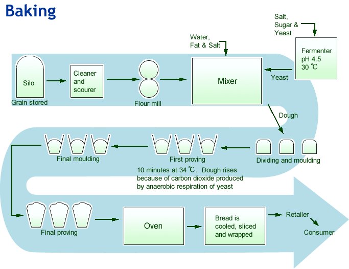 Kneading the dough Left in warm place to rise Shaped into mould Baked in oven