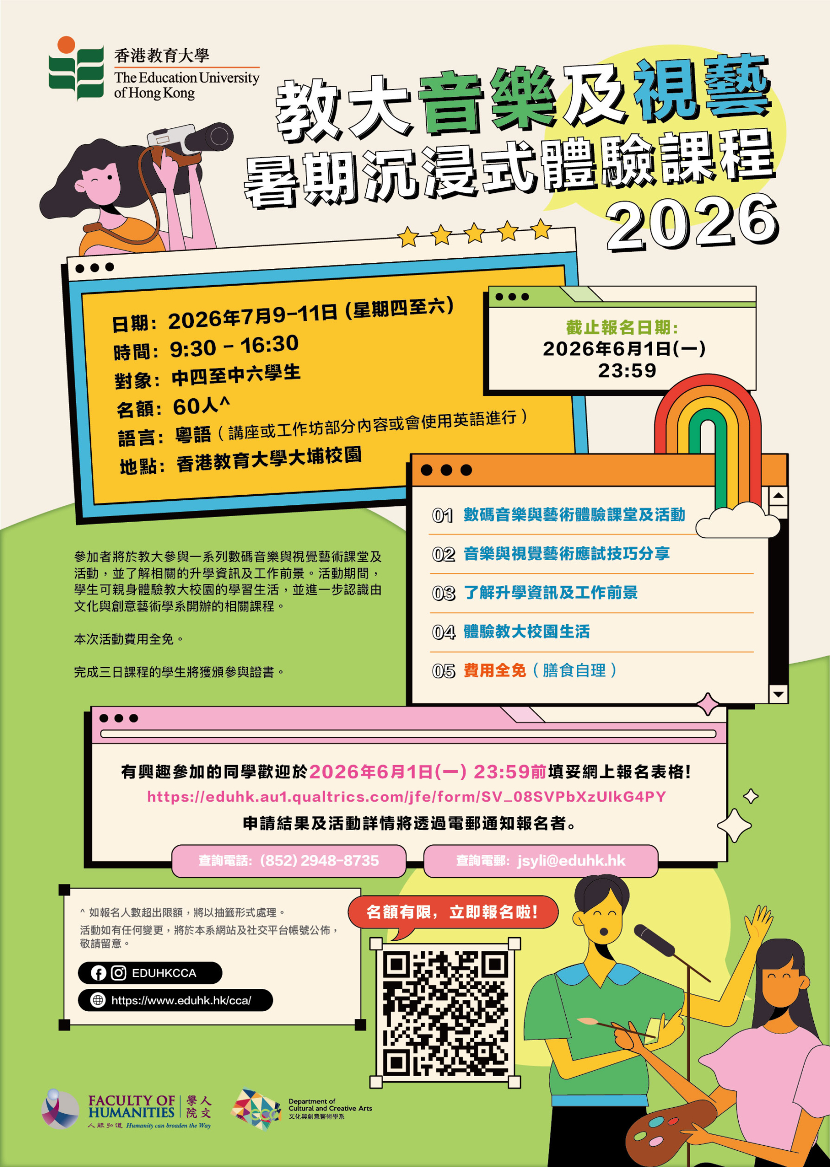 有興趣參加的同學歡迎於2026年6月1日(一)23:59前填妥網上報名表格!(https://eduhk.au1.qualtrics.com/jfe/form/SV_08SVPbXzUIkG4PY)