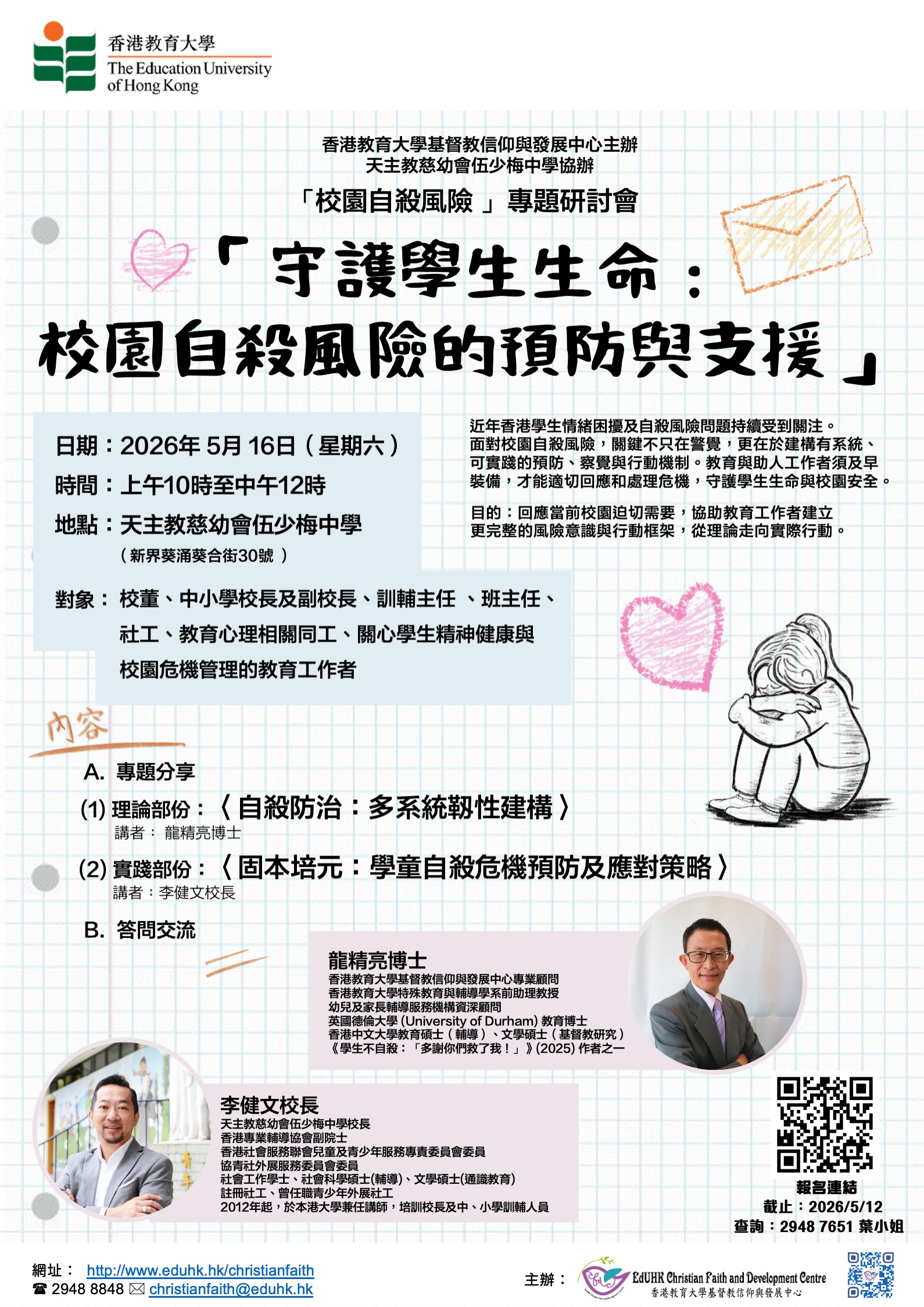 如有任何查詢,歡迎致電2948 7651或電郵christianfaith@eduhk.hk與中心同工聯絡。