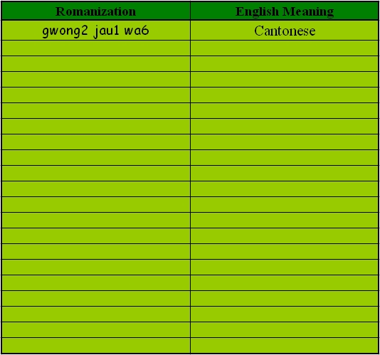 ![]() In this course, the following themes have been carefully chosen and developed to help beginning learners of Cantonese achieve basic competence in Cantonese. Materials have been localized to the Hong Kong Institute of Education context so scenarios can be set and seen in an authentic way. Unit 1: Course Introduction and Useful Tools and Resources Unit 2: Greetings Unit 3: Introducing Oneself Unit 4: Manners Unit 5: Numbers and Money Unit 6: Time and Routine Unit 7: Getting Around Unit 8: Shopping, Food and Drink Unit 9: Transportation Unit 10: Useful Education Terms Unit 11: Emergency Unit 12: Classroom Language Unit 13: Invitation and Social Skills Unit 14: Places in Hong Kong Unit 15: Reflection Introduction of Portfolio Learning and my vocabulary log .Introduction to the Portfolio learning for this course and how to make use of your vocabulary log sheets to record new words that you have learnt. References: Ager, S. (2006). Omniglot writing system and languages of the world. Retrieved August 31, 2006, from http://www.omniglot.com/writing/cantonese.htm Cantonese Learning Centre. (2006). What Cantonese is? Retrieved August 31, 2006, from http://www.clc.com.hk/material/sound.html Matthews, S. & Yip, V. (2004). Cantonese: a comprehensive grammar. London: Routledge. New Asia-Yale-in-China Chinese Language Centre. (1991). English-Cantonese Dictionary. Hong Kong: The Chinese University of Hong Kong. Snow, D. (2004). Cantonese as Written Language: The Growth of a Written Chinese Vernacular. Hong Kong University Press. ngo5 dik1 chi4 yu5 biu2 (My Vocabulary Log) 我的詞語表 ![]() © Copyright by The Hong Kong Institute of Education (2013). Not to be reproduced in any manner without express premission of The Hong Kong Institute of Education |