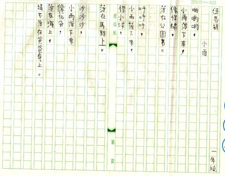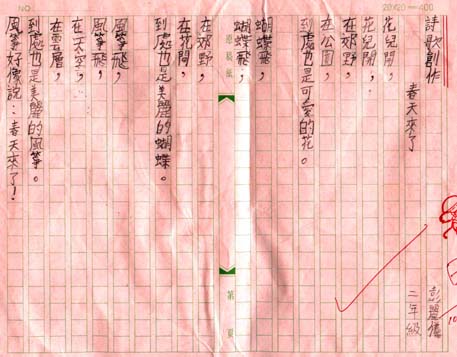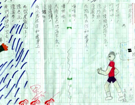 學生對聯想詞彙的環節甚表興趣。只要有一兩位同學開始發表,即能帶動其他同學爭相發表,更進而「各出奇謀」,新詞妙語;你簡直料想不到他們的奇妙的聯想、幻想和創造力!大概是因無須串寫冗長的句子,只須說出單字或詞語,不構成壓力和困難,一般能力不強的學生亦可做到。當進入第二階段──串寫詩句,能力較強的同學,經過前段的腦筋運動一番後,已是很容易掌握技巧,更有向難度挑戰的。而能力較次的同學,亦因先前全體同學的互動腦力激盪,黑板上又有許多詞彙供選用,又再加上有小詩範例一篇,亦能從模仿中寫出一首小詩。作為第一次的新嘗試,能在輕鬆、活潑、自由和有趣的氣氛中完成「前所未有」的工作,他們都能獲得成功的滿足感和愉快。
