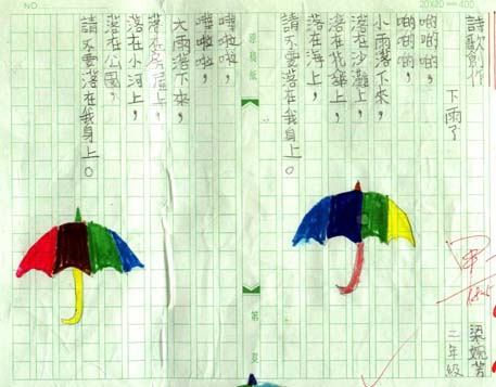 這種經過集體思考和探求,再而進行個人創作、寫作或模仿的學習方式,對能力較次的學生幫助很大。他們不用孤軍作戰般,在寫作的荊途上沮喪地徘徊和踫釘子。但願他們日後能滿有信心和興趣去享受寫作的樂趣。