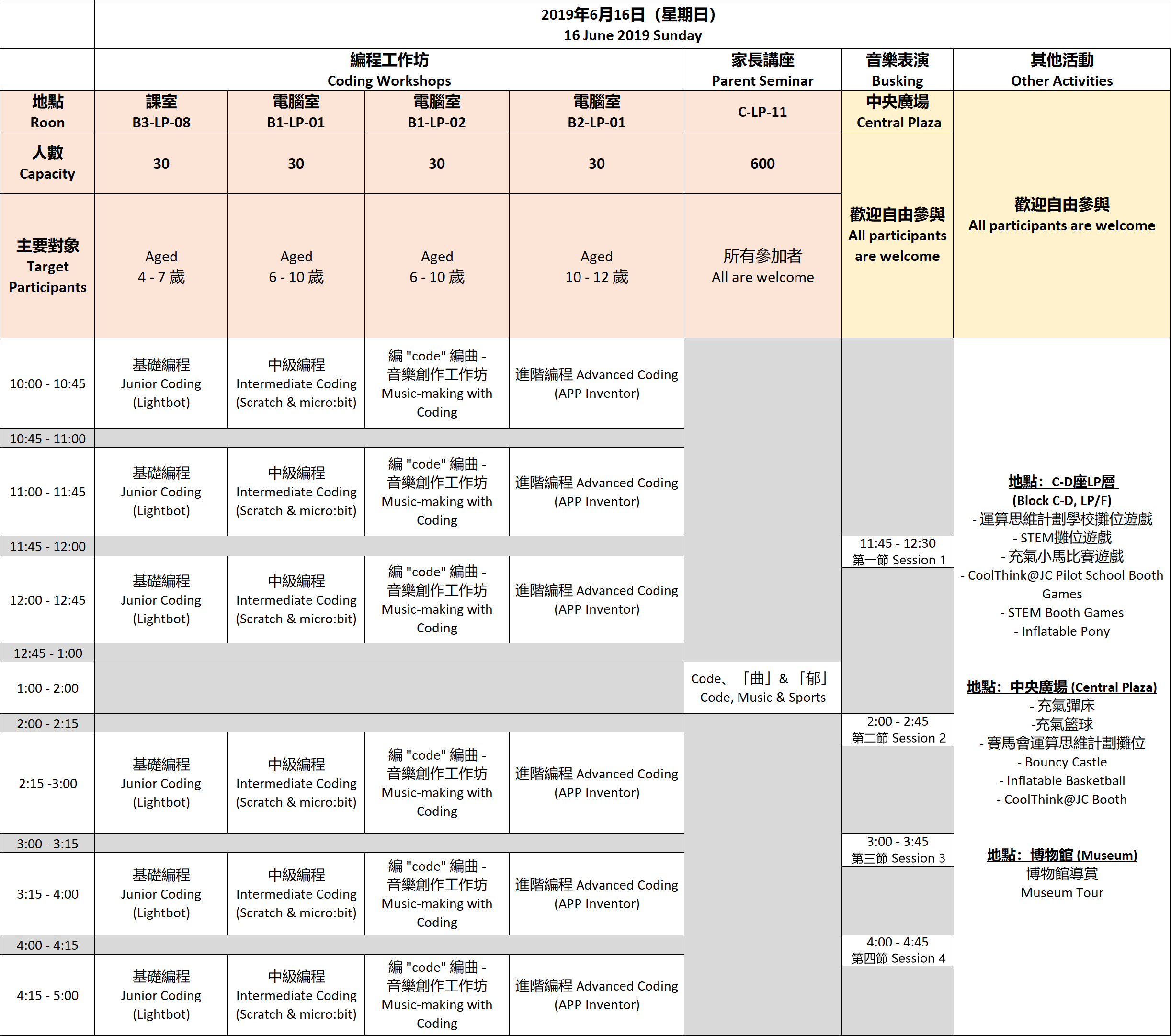 Registration is on first-come first-served basis. Please select specific sessions through online registration system. Joining Coding Workshop and Parent Seminar (at least one session for each) on the same day will be eligible for micro:bit redemption.*