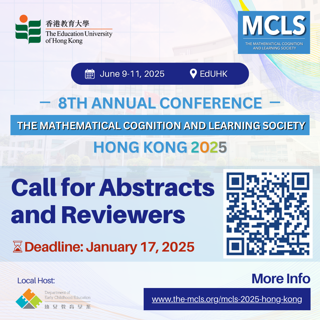 The ECE Department at EdUHK will host the 8th Annual Conference of the Mathematical Cognition and Learning Society from June 9-11, 2025. This is the first time the MCLS 3-day annual conference, which will be conducted in English, will be held in Asia!