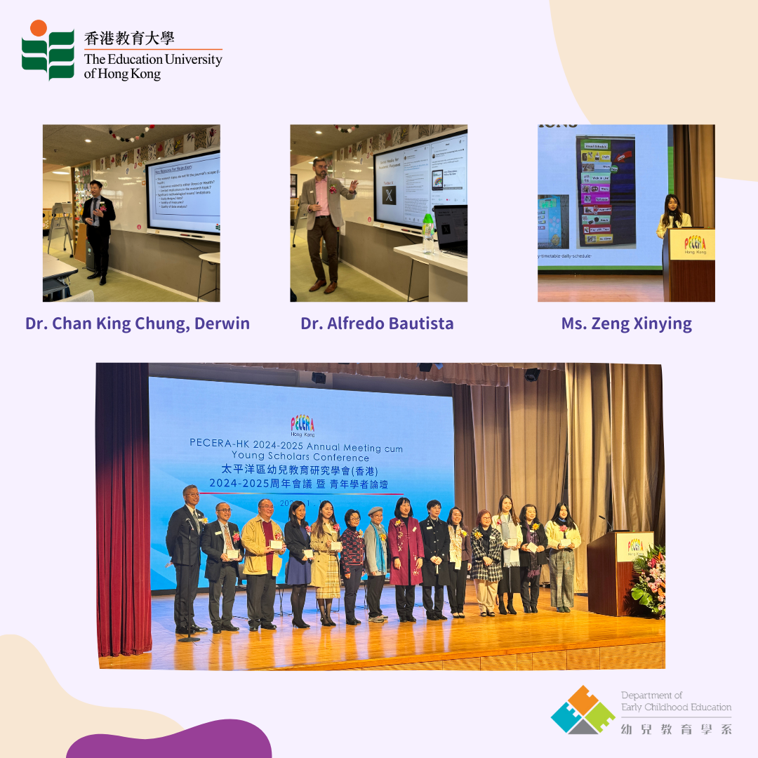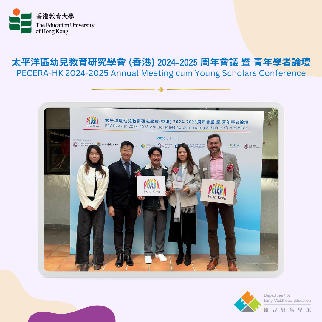 The Pacific Early Childhood Education Research Association Hong Kong (PECERA-HK) 2024-2025 Annual Meeting cum Young Scholars Conference, co-organised by the ECE Department, was held on 11 January 2025. Dr. Lau Yi Hung, Eva, Acting Head of the Department, attended the event as representative of the University and the Department.