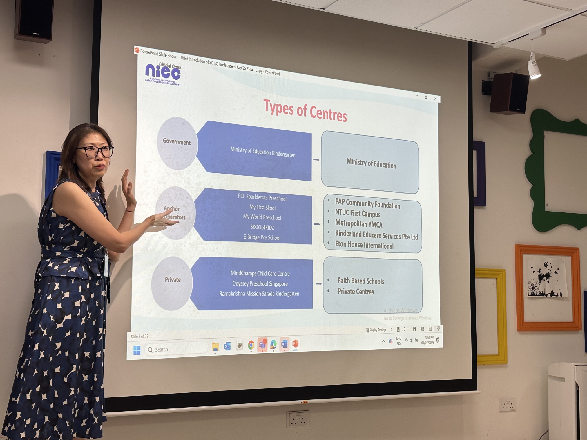 During the visit, the Campus Director of NIEC delivered an insightful presentation on the structure of early childhood education in Singapore, including the various types of ECE settings under different governance.