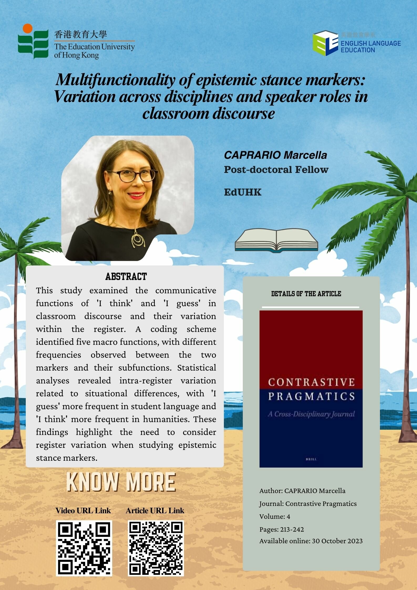 Multifunctionality of epistemic stance markers: Variation across disciplines and speaker roles in classroom discourse