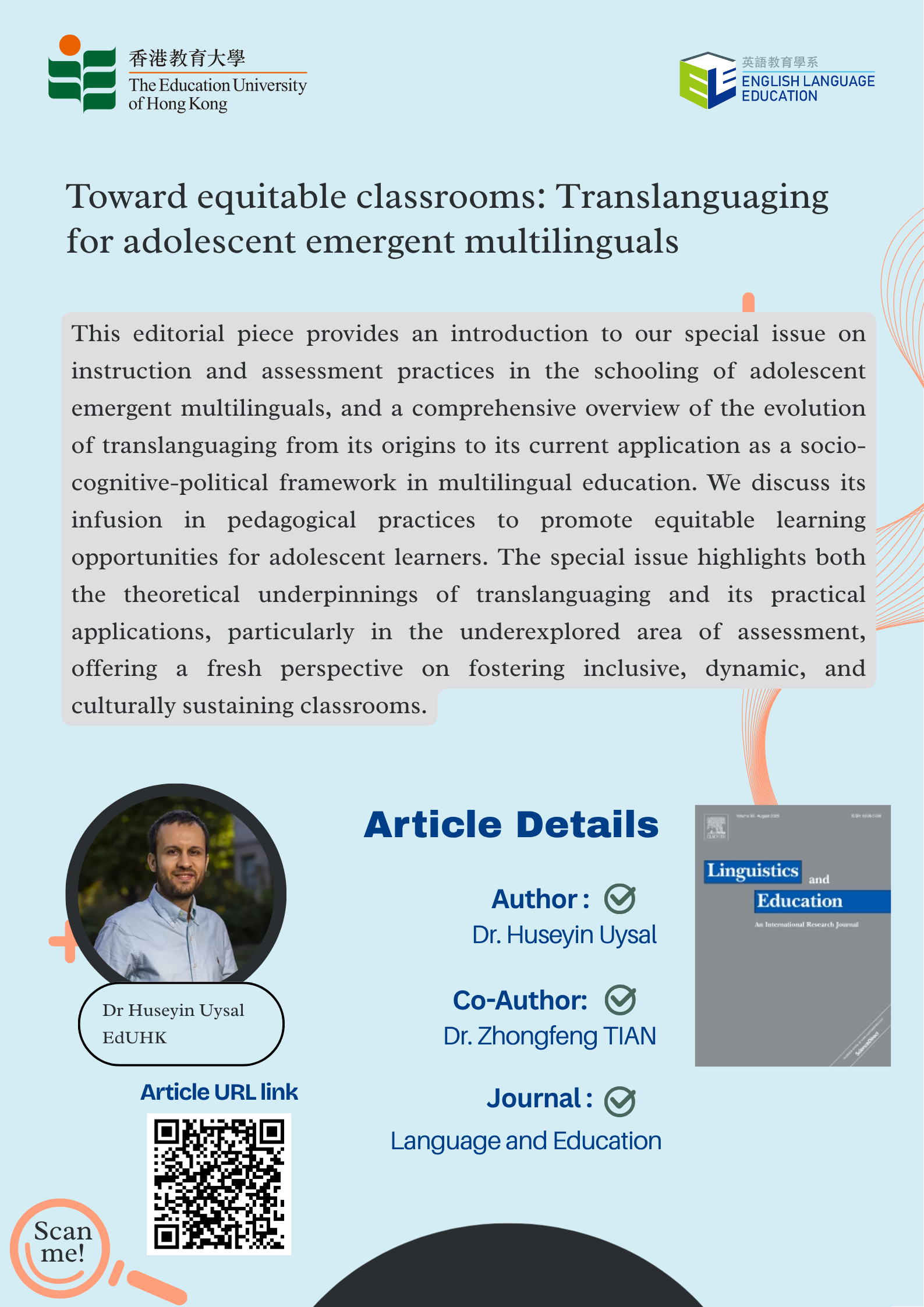 - Uysal, H., & Tian, Z. (2025). Toward equitable classrooms: Translanguaging for adolescent emergent multilinguals. Linguistics and Education, 86, Article 101404. https://doi.org/10.1016/j.linged.2025.101404