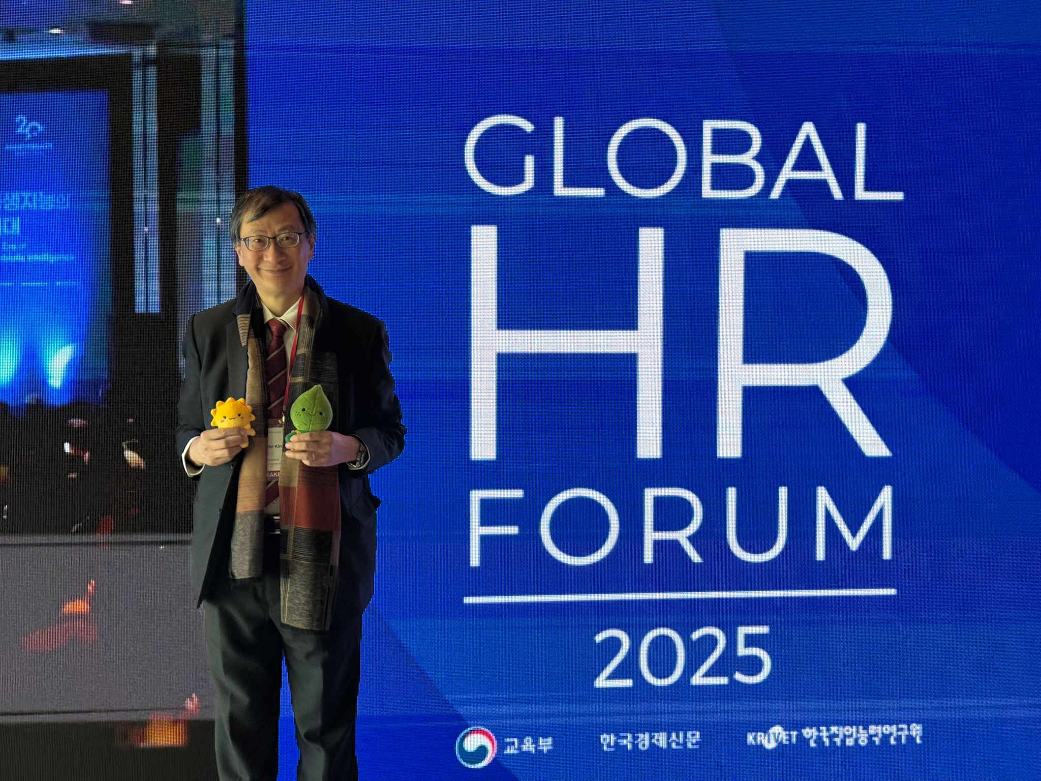 The President of The Education University of Hong Kong (EdUHK), Professor John Lee Chi-Kin, led a delegation including Assistant Vice President (Talent and Culture) Ms Cindy Cheung Yuen-lai, to Seoul, South Korea, in early November, to attend the 20th Global HR Forum 2025. Accompanying the delegation were EdUHK mascots Study Leaf and Sunny Moodle.