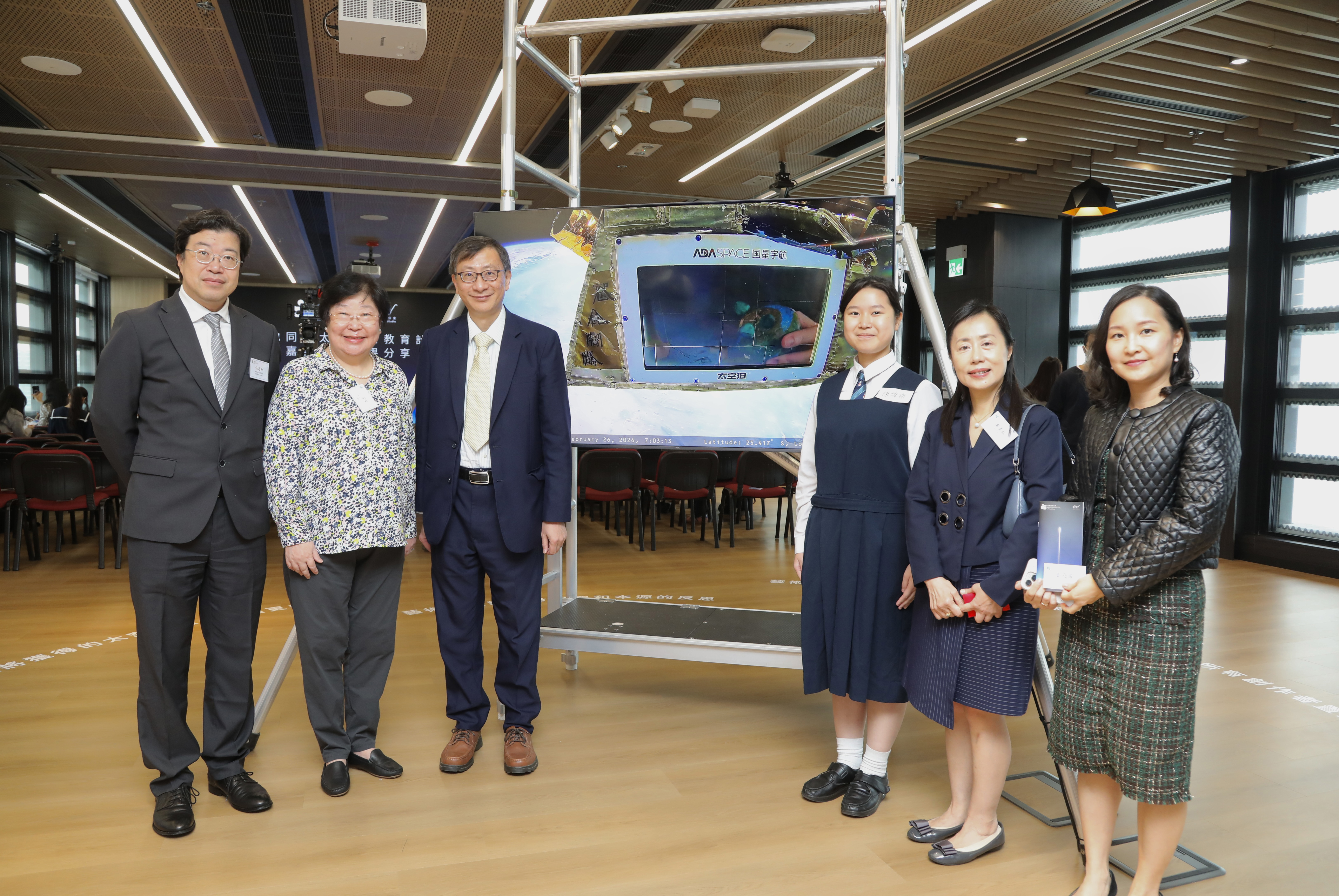 Officiated by Mr Ng Chi-wo, Assistant Director (Heritage and Museums) of the Leisure and Cultural Services Department, together with EdUHK President Professor John Lee Chi-Kin, the ceremony celebrated the achievements of participating students. Over the past year, the project has drawn nearly 200 secondary school students from 38 schools and another 200 EdUHK students to a series of masterclasses and workshops. The initiative encouraged young people to push boundaries, adopt a ‘space perspective’ in re‑examining Earth, and explore fresh intersections between art, science and education.