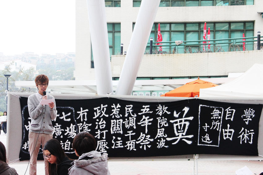 ◎ 「教院風波五年祭」中,教院學生朗讀「教院人」維護學術自由的立場