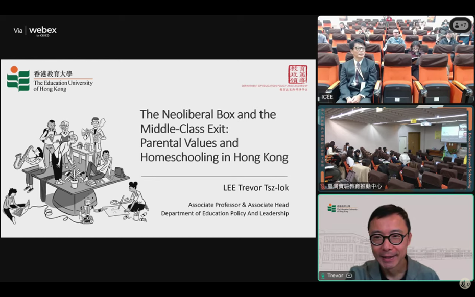 Dr Trevor Lee, Associate Professor in the Department of Education Policy and Leadership, was invited to be the keynote speaker at the 9th International Conference and Workshop on Experimental Education 2025. Hosted by the Taiwan Experimental Education Center (TEEC) at National Chengchi University in Taipei, the conference, themed “Education Beyond Schooling—Alternative ways for aiding lives of AI generation,” brought together global scholars to discuss innovative out-of-school education pathways. Presenting virtually on December 14, 2025, Dr Lee’s talk, “The Neoliberal Box and the Middle-Class Exit: Parental Values and Homeschooling in Hong Kong,” looked into the mainstream education—both the school system and the parent perspectives within it, and used the homeschooling case as an example to illustrate how middle-class families are increasingly seeking ways to get around Hong Kong’s high-pressure, performative school system. The presentation concluded by raising several reflective questions concerning an AI-shaped educational future.