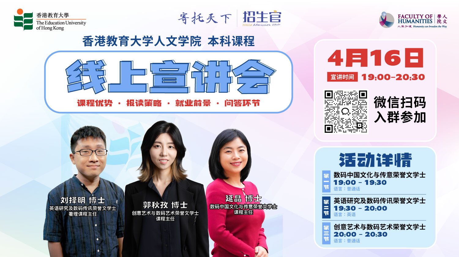 | 19:00 - 19:30 | Programme Introduction Bachelor of Arts (Hons) in Digital Chinese Culture and Communication