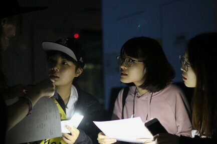 On Halloween night, the participants were asked to find out a murderer, the location and the murder weapon in teams. Each team had a leader who had a list of hints and a list of rooms; the team had to go all over the campus. An International Tutor with a specific color was stationed in a classroom, and with a specific riddle that needed to be solved or a task that needed to be completed. Upon successful completion, the teams were given an envelope of the color matching that of the International Tutor.