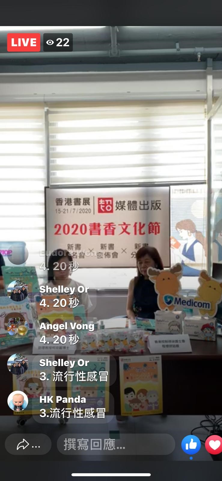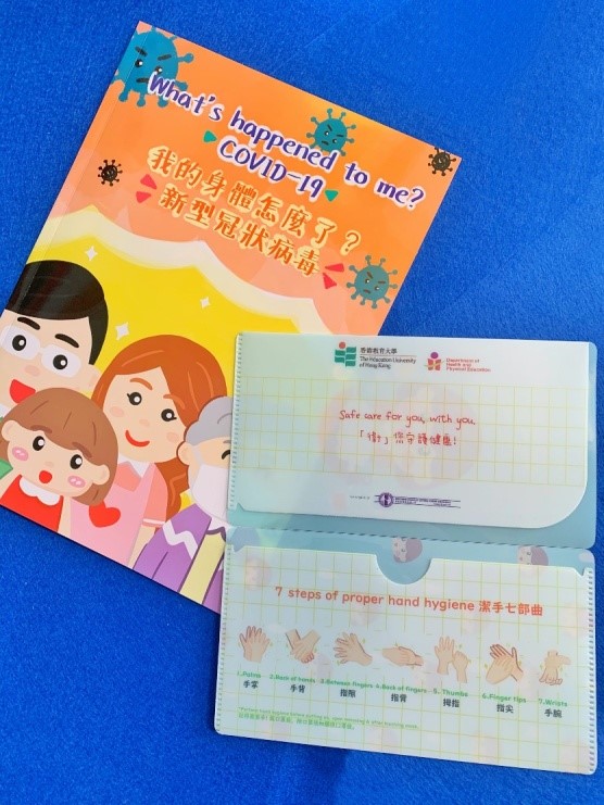 To be complementary to the publication of book series of “What’s happened to me?”, Easy Publish. Org, the publishing company, has organised a book launch event on 18 July 2020 via Facebook Live (Photo 3). The speakers, Dr. OR Pui Lai, Peggy (HPE, EdUHK) and Ms. Patricia Ching (HKICNA), have shared their professional advice on infection control measures and highlighted the niches of these picture book series which are the first ever children story book on infection control education. At this well-attended event, Facebook Live book launch has got over 500 views on live, having an exciting game time with online audiences. Anyone who is interested in these books can place order directly through the publisher link: https://drive.google.com/drive/mobile/folders/1nDenavNbTrK-q0HIHekWV4tLORXxd4Al?usp=sharing. These books will be sold with gift packs which are sponsored by Medicom, including child face mask, alcohol-based hand gel, ear-loop mask extender, and stickers (Photo 4). Details of all the infection control measures and storybooks can be found in our self-developed website at Health Observatory https://www.healthobservatoryhk.com/ as well.