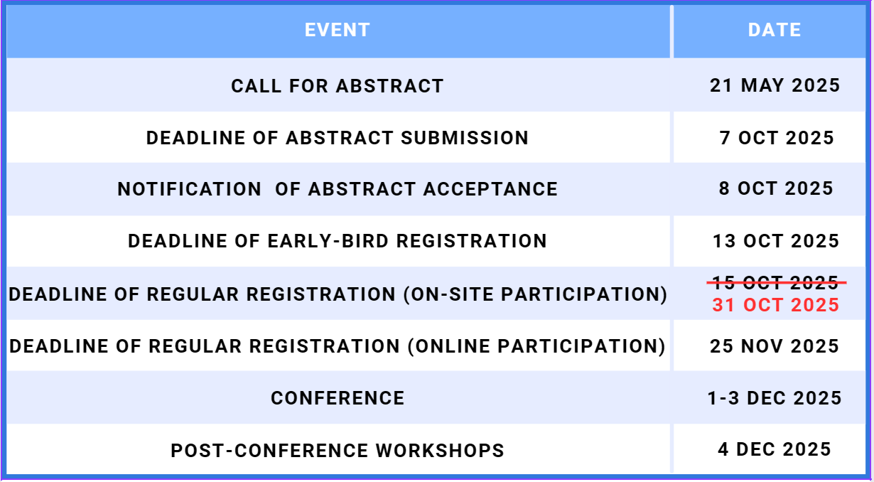 2. By submitting the abstract, you consent to its publication in all conference materials (e.g., programme booklet, conference website, etc.).
