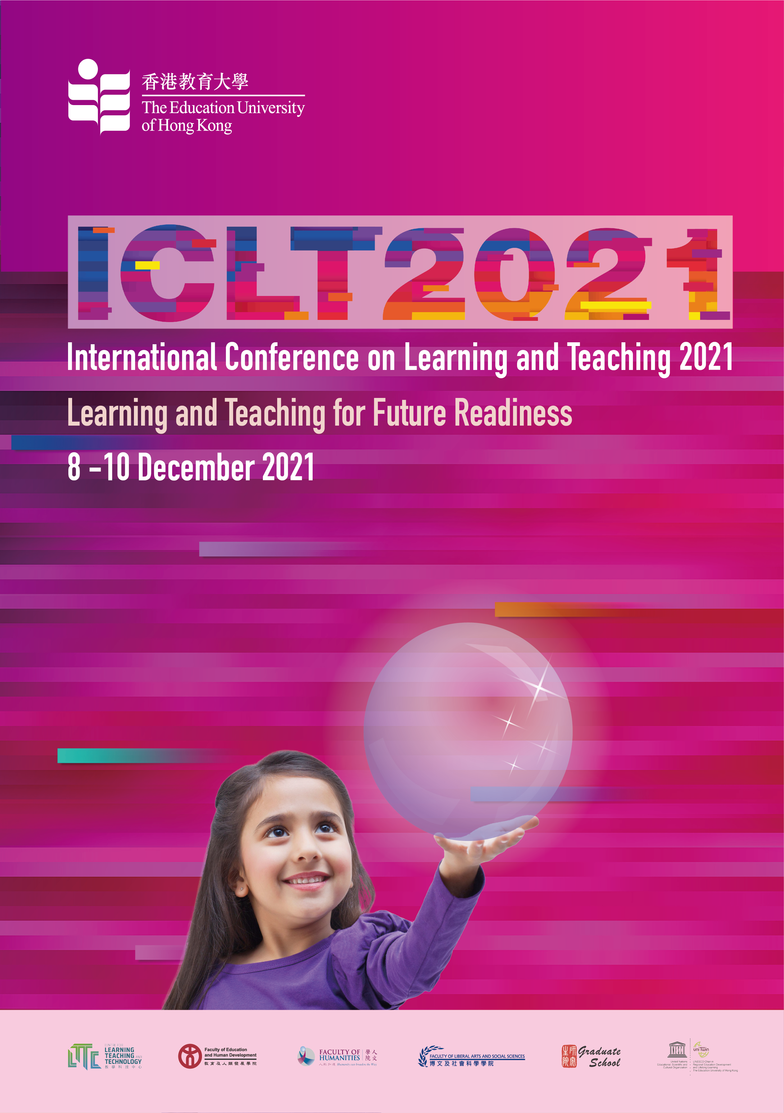 The “International Conference on Learning and Teaching 2021” (ICLT2021) ) is organised by The Education University of Hong Kong (EdUHK) and will be held online on 8-10 December 2021. The conference will comprise keynote speeches by internationally renowned scholars, symposium, doctoral consortium, and paper and poster presentations. It provides an interactive platform for academics, researchers, practitioners and professionals in the education sector to share innovative learning and teaching approaches in higher education, and exchange of good practices in learning and teaching in school education.