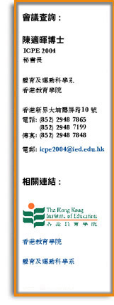 icpe2004@ied.edu.hk¦p§@ªÌ¿ï¥Î¹q¶l¤è¦¡´£¥æ½×¤åºKn¡A¤£»Ý¦A´£¨Ñ¹q¸£ºÏºÐ¡C