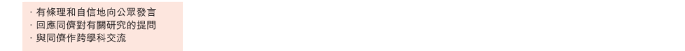 「不用講稿才是『真正的簡報』。我們需要 有充足的空間與公眾對話與交流,加上只要對自己的研究有充份了解,我們就可以自然、流暢地分享研究成果。 |