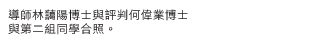 「第三組明顯在事前有準備如何回應評判的問題。對於我們有關研究方法及其研究價值的提問,他們反應敏捷,並有自 信地回應。」 |
