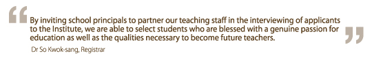 Interviewers Scheme • 8 interviews involving 360 principals in the interviewing of 8,000 applicants for the HKIEd |