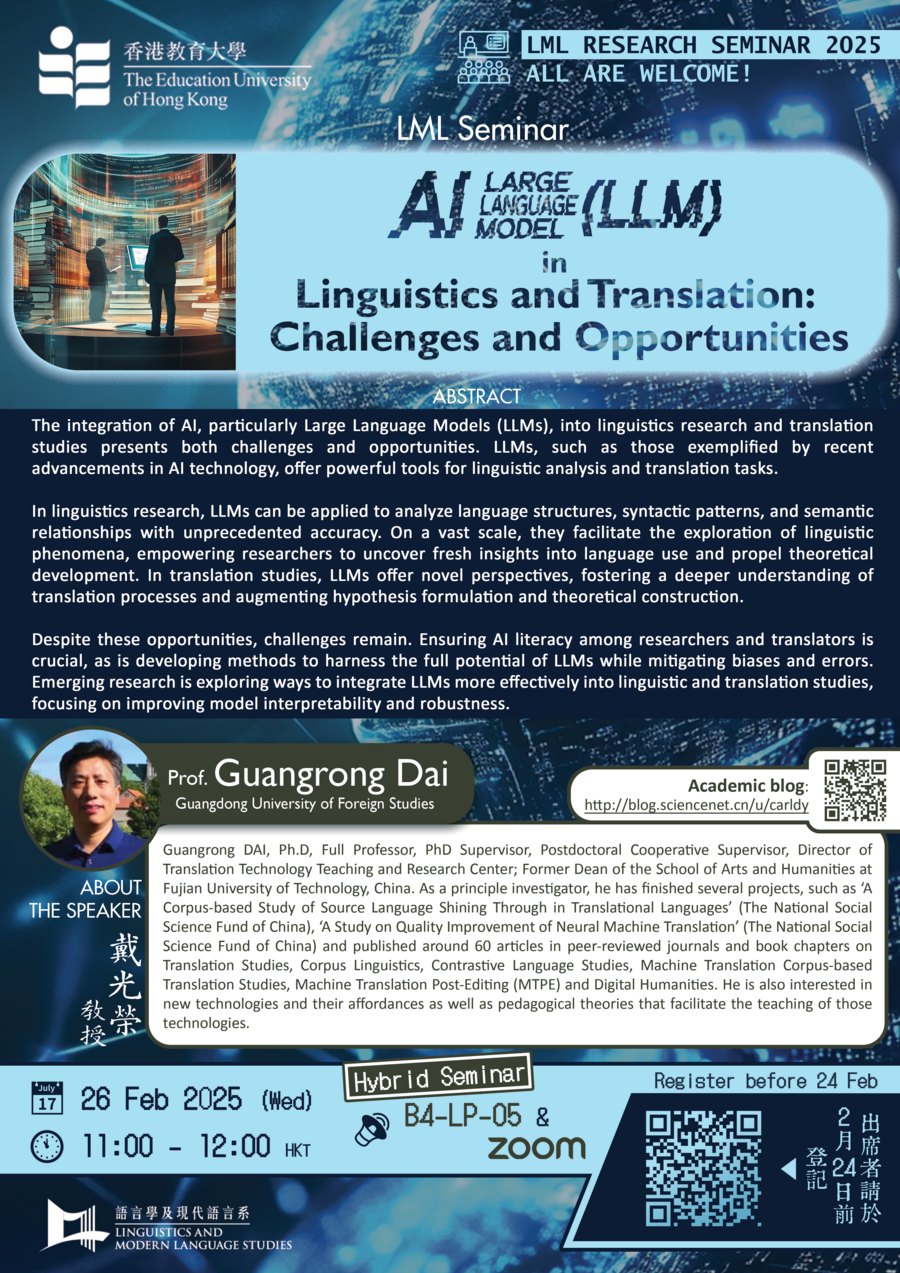 [Seminar] AI (LLM) in Linguistics and Translation: Challenges and Opportunities