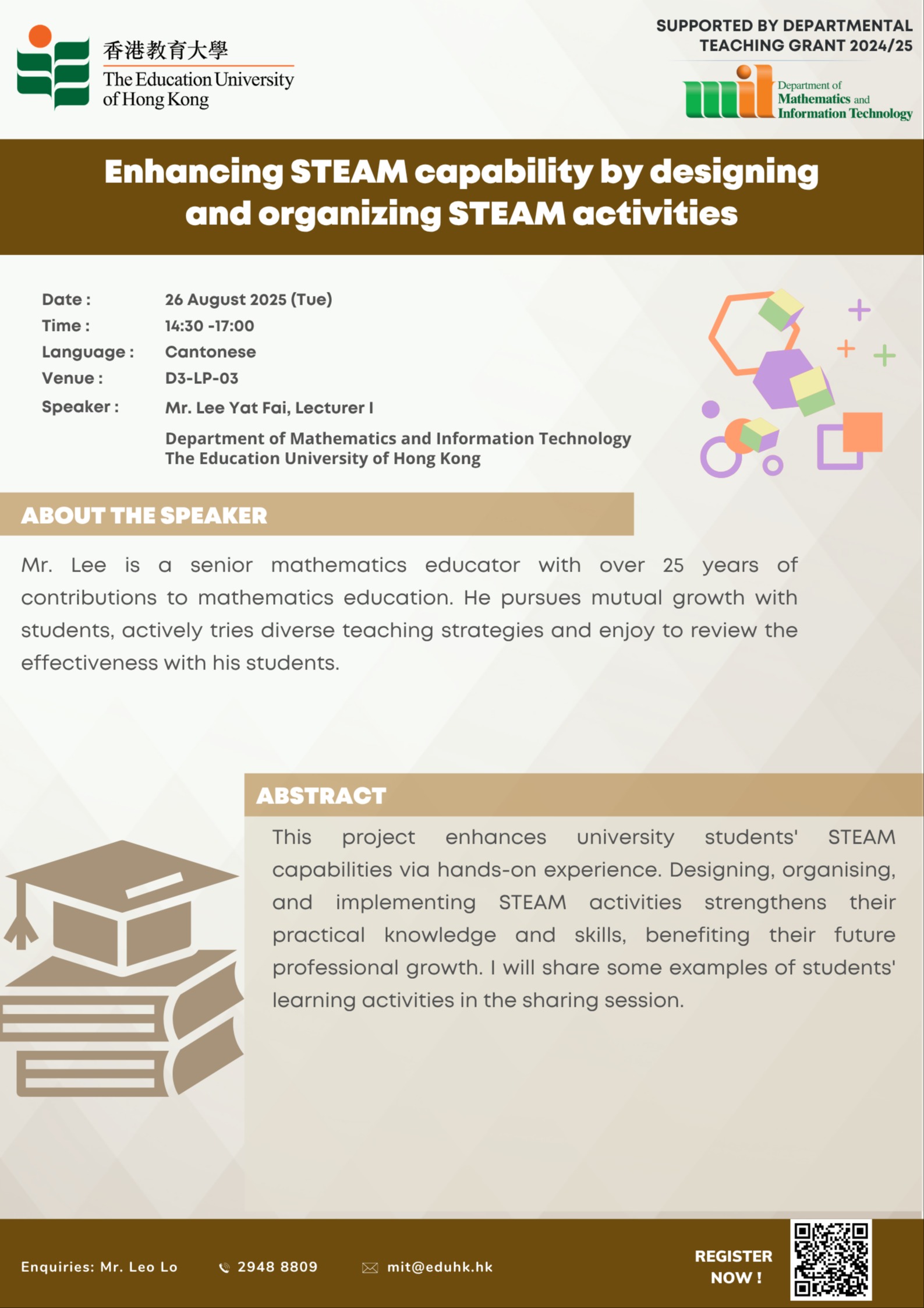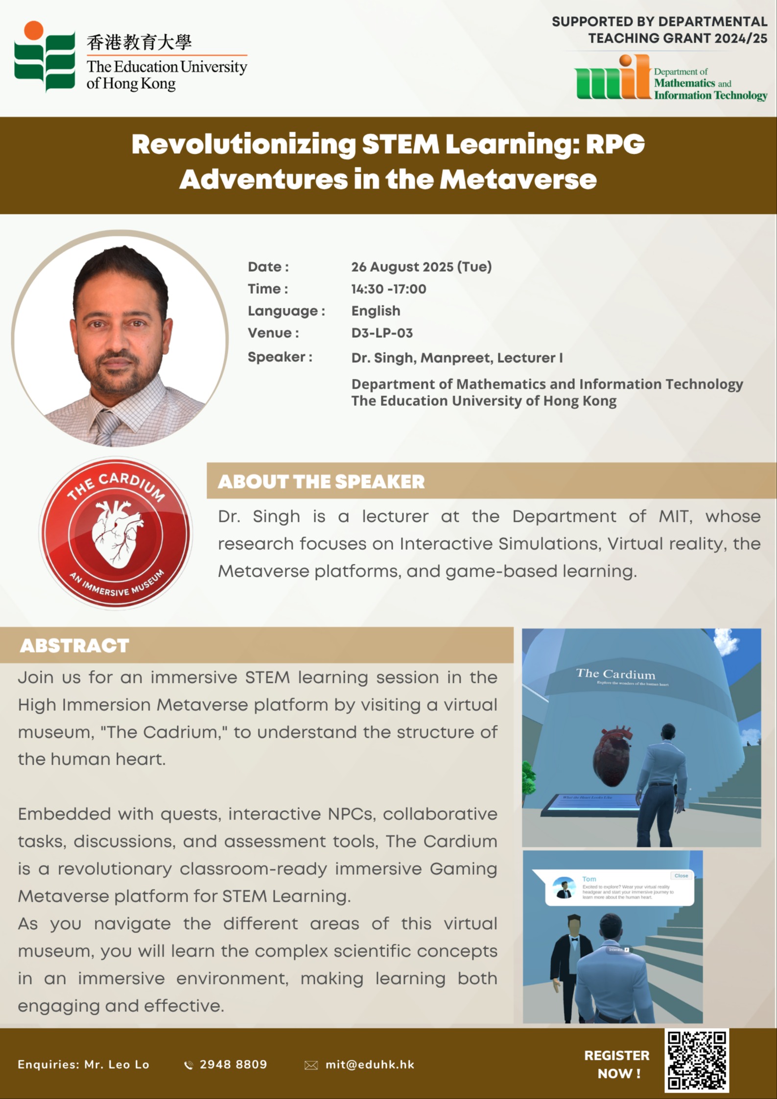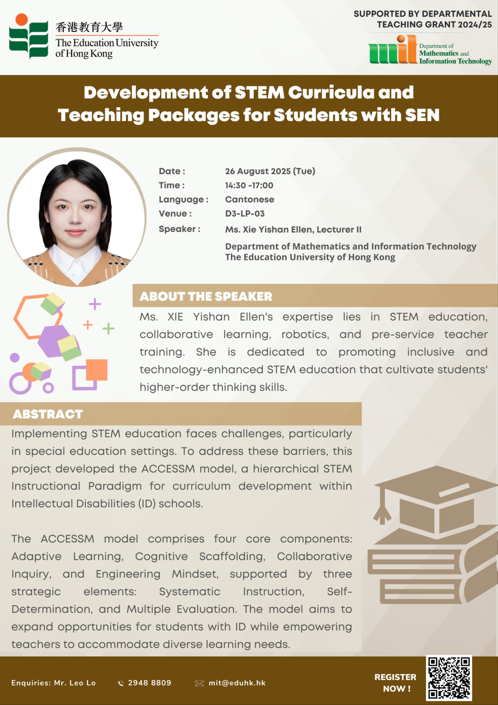 Speaker:Mr. Lee Yat Fai (EdUHK); Dr. Singh, Manpreet (EdUHK); Ms. Xie Yishan Ellen (EdUHK)