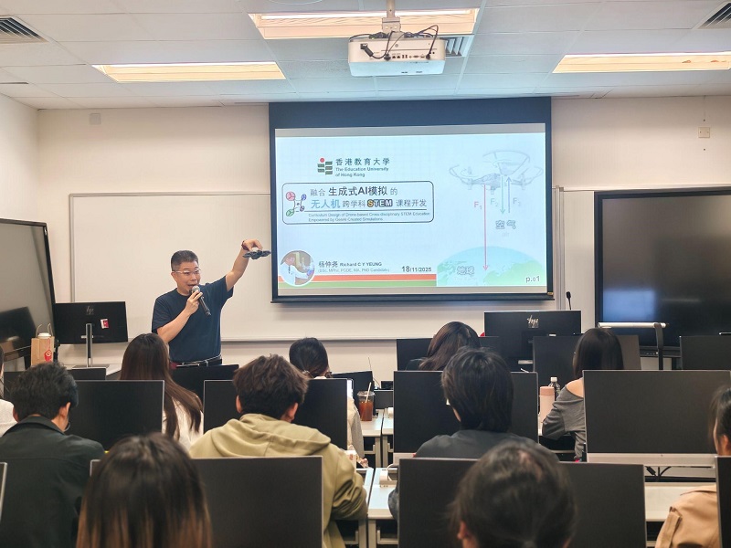 Mr YEUNG Chung Yiu from the Department of Science and Environmental Studies delivered an insightful presentation on “Curriculum Design of Drone-Integrated Cross-Disciplinary STEM Education Empowered by GenAI-Created Simulations.” He discussed the application of generative AI in creating interactive virtual flight simulation environments that facilitate inquiry-based learning in drone programming and engineering.