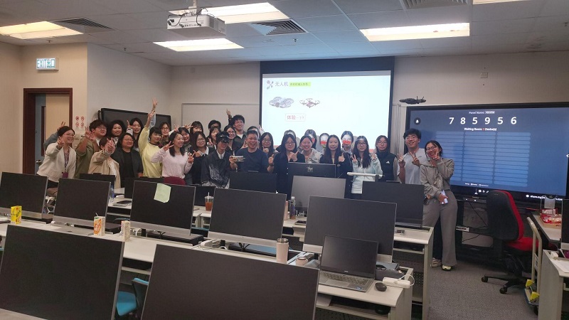 Using a drone to take a group photo with participants from Nanjing Normal University and EdUHK.