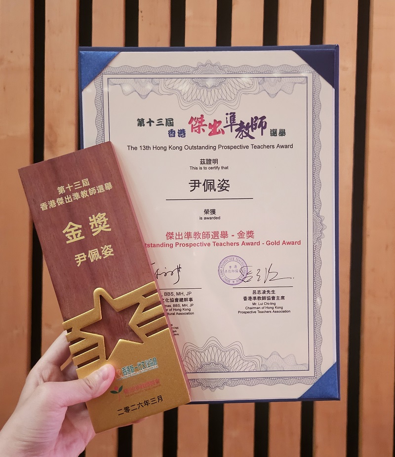 ![]() | Congratulations to our MIT student (WAN, PUI CHI) won the gold award in The 13TH Hong Kong Outstanding Prospective Teachers Award |