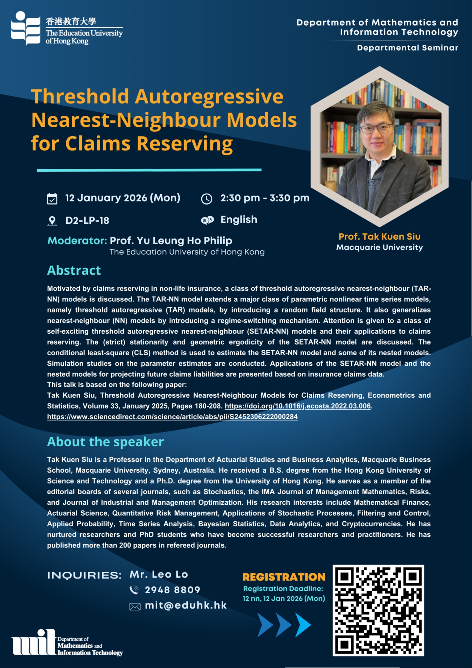 讲师:Prof. Tak Kuen Siu Macquarie University