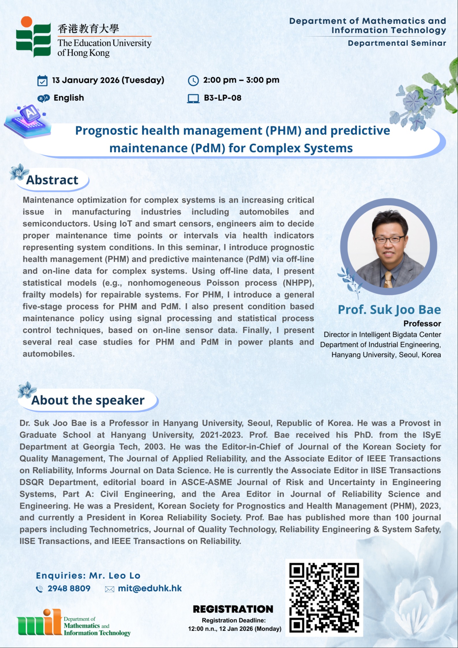 讲师:Prof. Suk Joo Bae Hanyang University