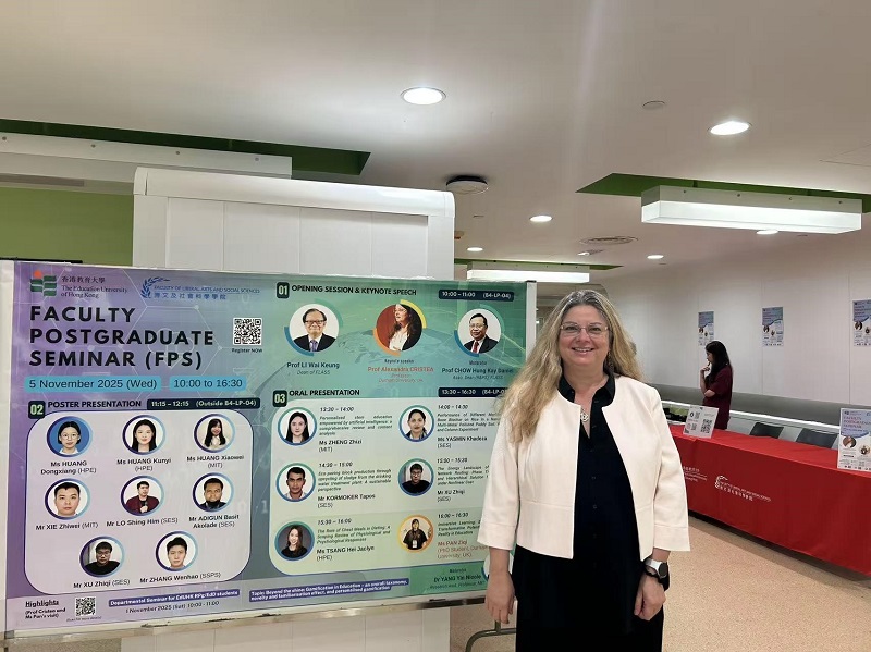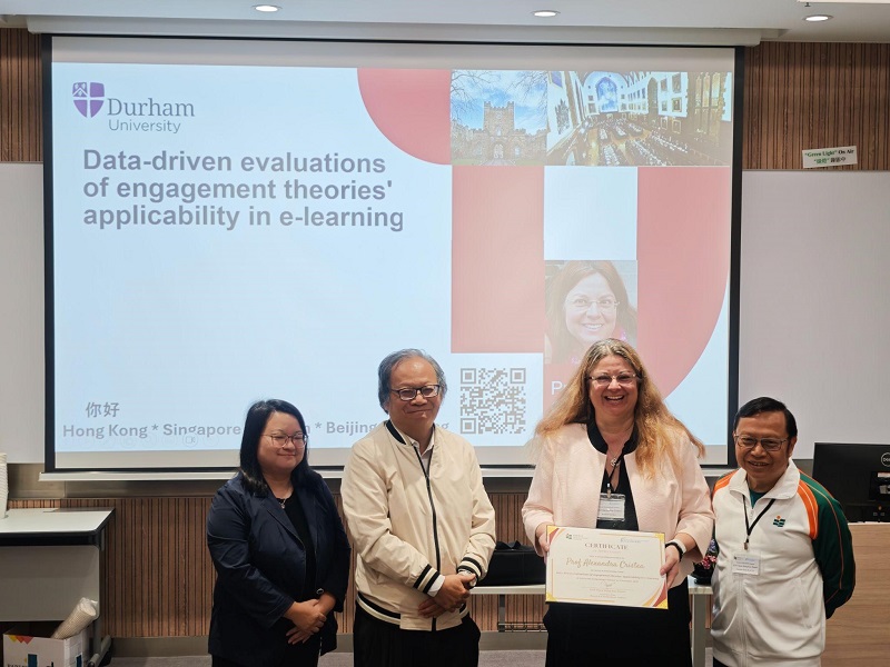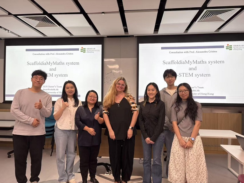 From 30 October to 6 November 2025, the Faculty of Liberal Arts and Social Sciences (FLASS) and the Department of Mathematics and Information Technology (MIT) at The Education University of Hong Kong (EdUHK) welcomed a delegation led by Professor Alexandra I. Cristea, FBCS FHEA SMIEEE, Chair in Computer Science at Durham University, and her PhD student Ms PAN Ziqi. The visit aimed to foster international collaboration at the intersection of learning sciences and educational technology, with a focus on AI learning systems and predictive learning analytics. During the programme, FLASS organised a Faculty Postgraduate Seminar examining the pedagogical design and ethical implications of AI in education. Meanwhile, MIT coordinated Professor Cristea’s engagements, which included technical workshops on AI learning platform. Through this series of events, the visit successfully established a cross‑institutional platform for advancing research on personalised and data‑informed teaching and learning.