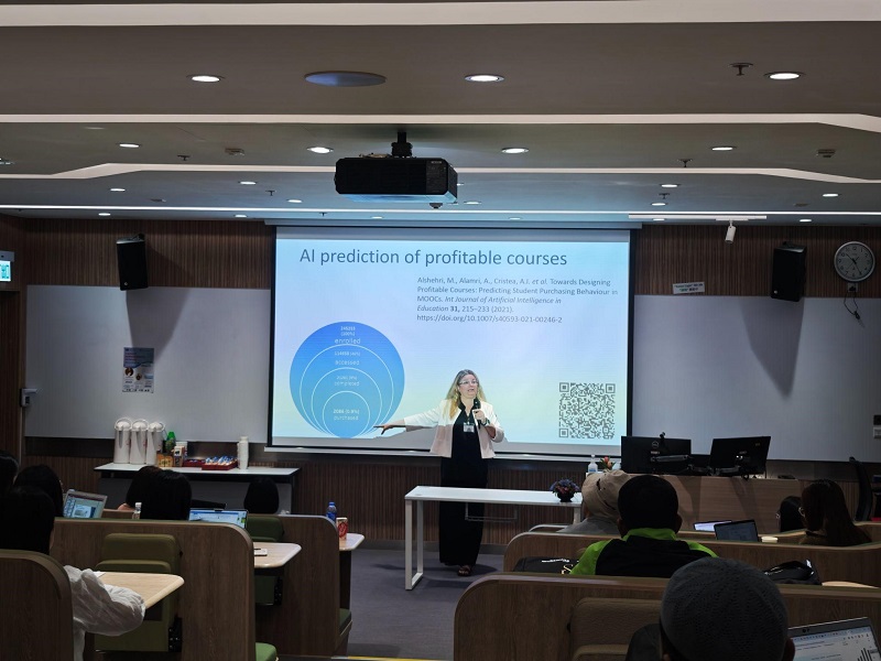 During their stay, Prof Cristea participated in several academic events for the university’s postgraduate community. On 1 November, Prof Cristea presented a seminar for research postgraduate and EdD students titled “Beyond the Shine: Gamification in Education – An Overall Taxonomy, Novelty and Familiarisation Effect, and Personalised Gamification” for research postgraduate and EdD students. Moderated by Dr SUN, the presentation examined how gamification can enhance educational engagement, introducing Toda’s taxonomy, discussing its motivational effects over time, and advocating for personalised gamification tailored to learners' preferences. This aimed to deepen participants' understanding of sustainable learner engagement.