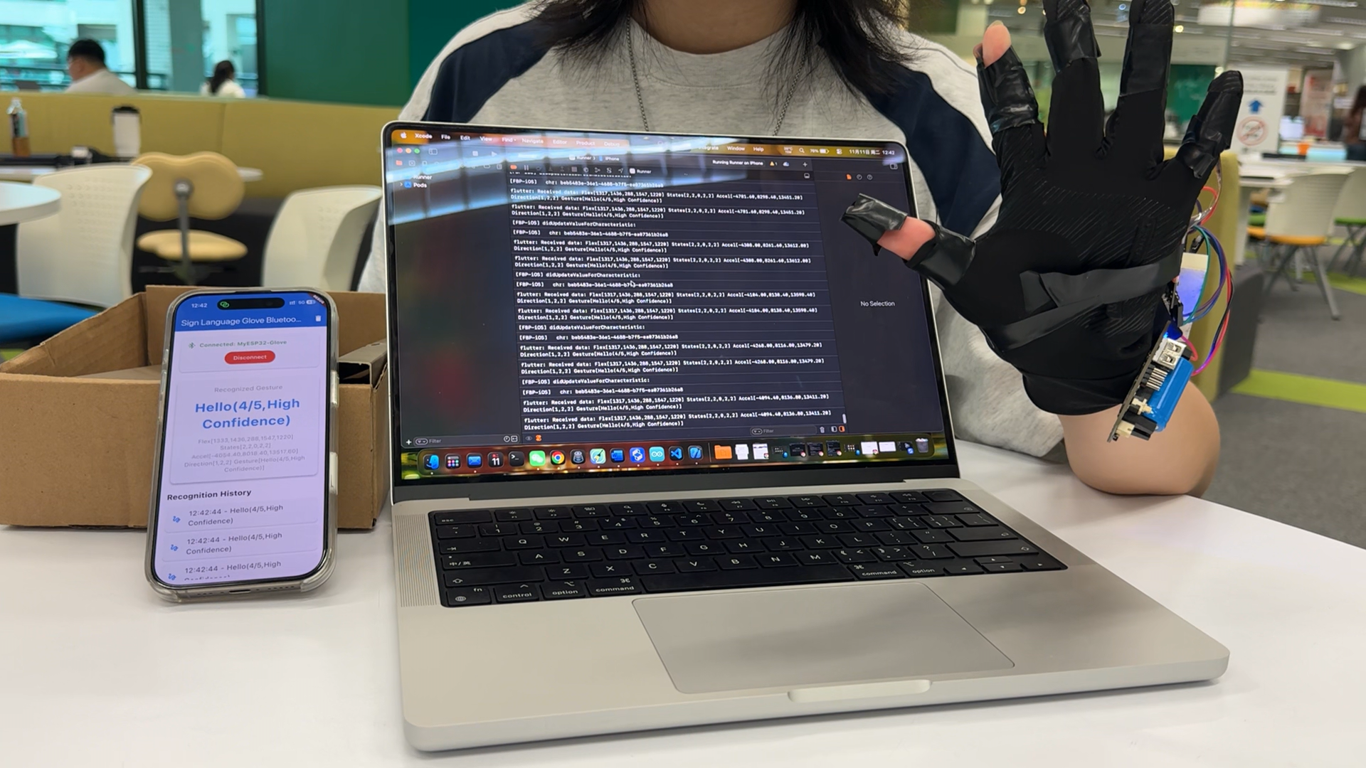 本次獲獎團隊由數學與資訊科技學系的黃予思、劉曉彬兩位三年級學生,以及一年級學生鄧逸軒組成,指導老師為張浩然博士。團隊成員深耕人工智慧專業知識,針對聾啞人士與普通大眾之間長期存在的溝通壁壘,研發出一款專為中文手語使用者設計的智慧手語翻譯手套,為無障礙溝通提供了全新解決方案。
