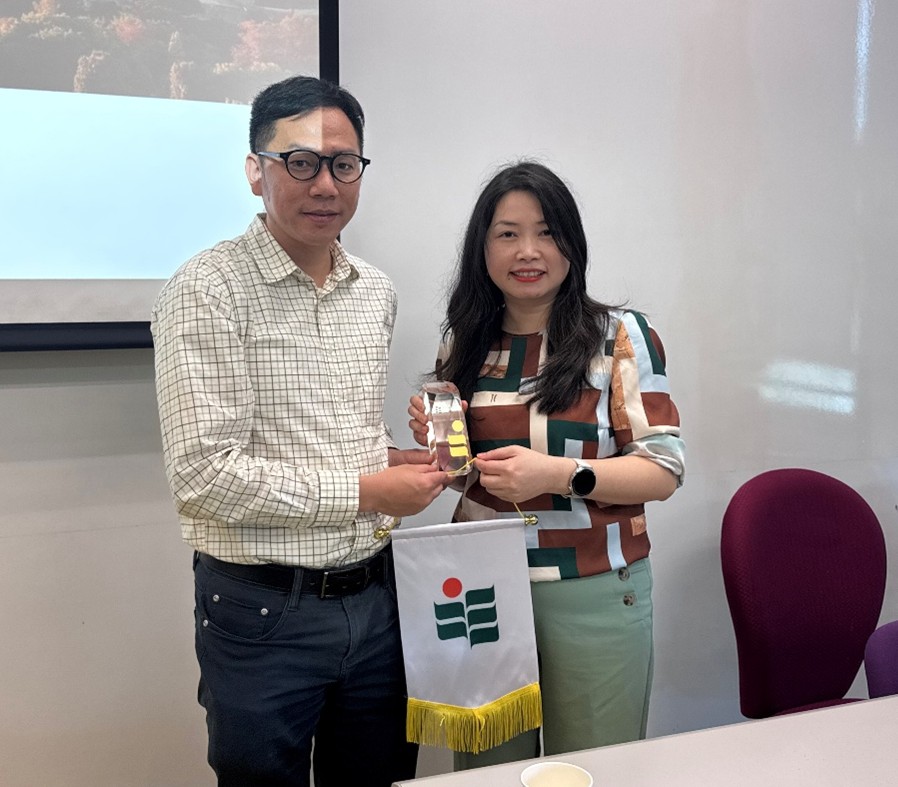 Prior to the seminar, Dr Ling Man Ho, Acting Head of the Department of Mathematics and Information Technology at The Education University of Hong Kong, extended a warm welcome to Dr Wang and exchanged souvenirs on behalf of the department.